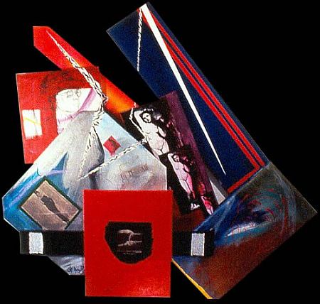 Mixed Media Assemblage Tube, Mirrors, Collage on Canvas
