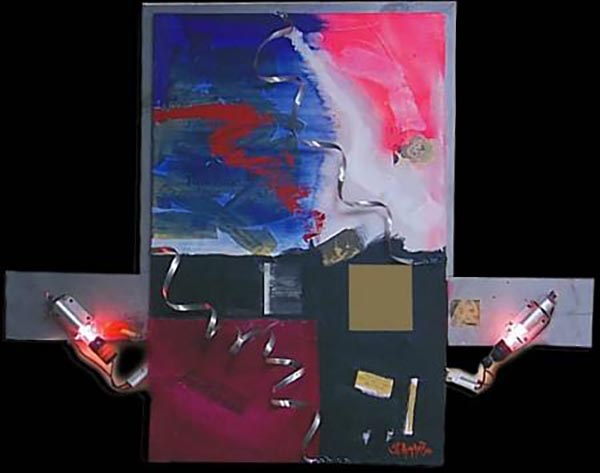 C'est la vieLasers, Steel, Wood, Mixed Media on Canvas 49 x 33 x 6" 1990